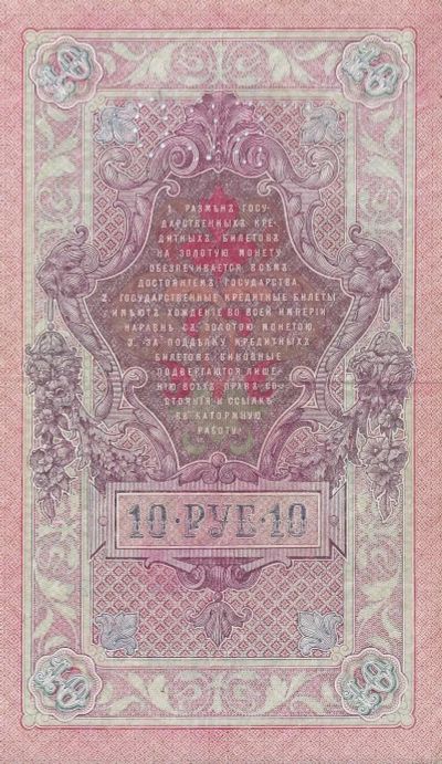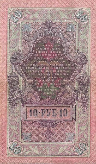 10 рублей 1909 (1919) год . Северная Область. Шипов – Софронов. перфорация ГБСО.