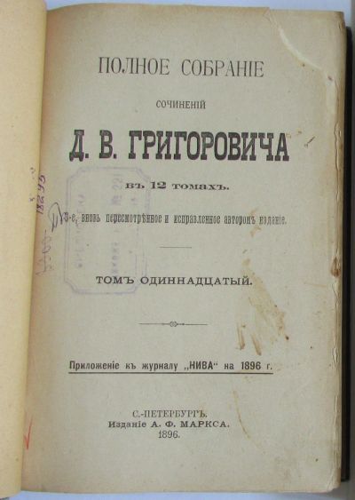 Полное собрание сочинений. Отдельные 11-й и 12-й тома в одной книге. Д.В.Григорович. 1896 г.