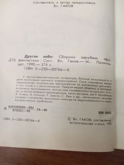 Гаков Владимир (составитель, автор предисловия) - Другое небо. Сборник зарубежной научной фантастики. / Авторы: Эрик Ф. Рассел, Роберт Шекли, Роберт Силверберг, Урсула Ле Гуин, Альфред Бестер, Т. Когсуелл и др. / 5-250-00766-X / Художник В. Резников.